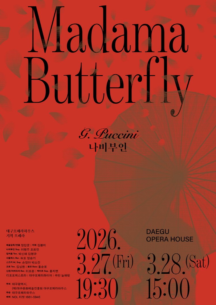 Madama Butterfly is coming in March, one of Daegu Opera House’s signature productions that earned international acclaim last year at Estonia’s Saaremaa Opera Festival. The opera combines lyrical music with a tragic love story and is often called “the most beautiful opera in the world.”