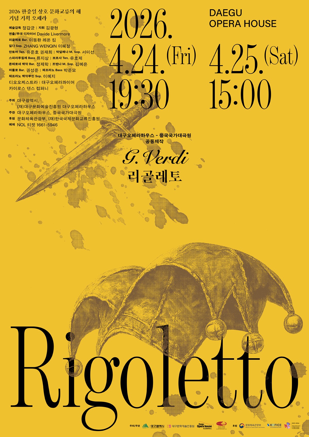 Daegu Opera House will present Rigoletto on April 24–25 as Asia’s first opera jointly produced and distributed by South Korea and China, marking the Korea–China Year of Cultural Exchange. It is a collaboration between Daegu Opera House and China’s National Centre for the Performing Arts (NCPA).
